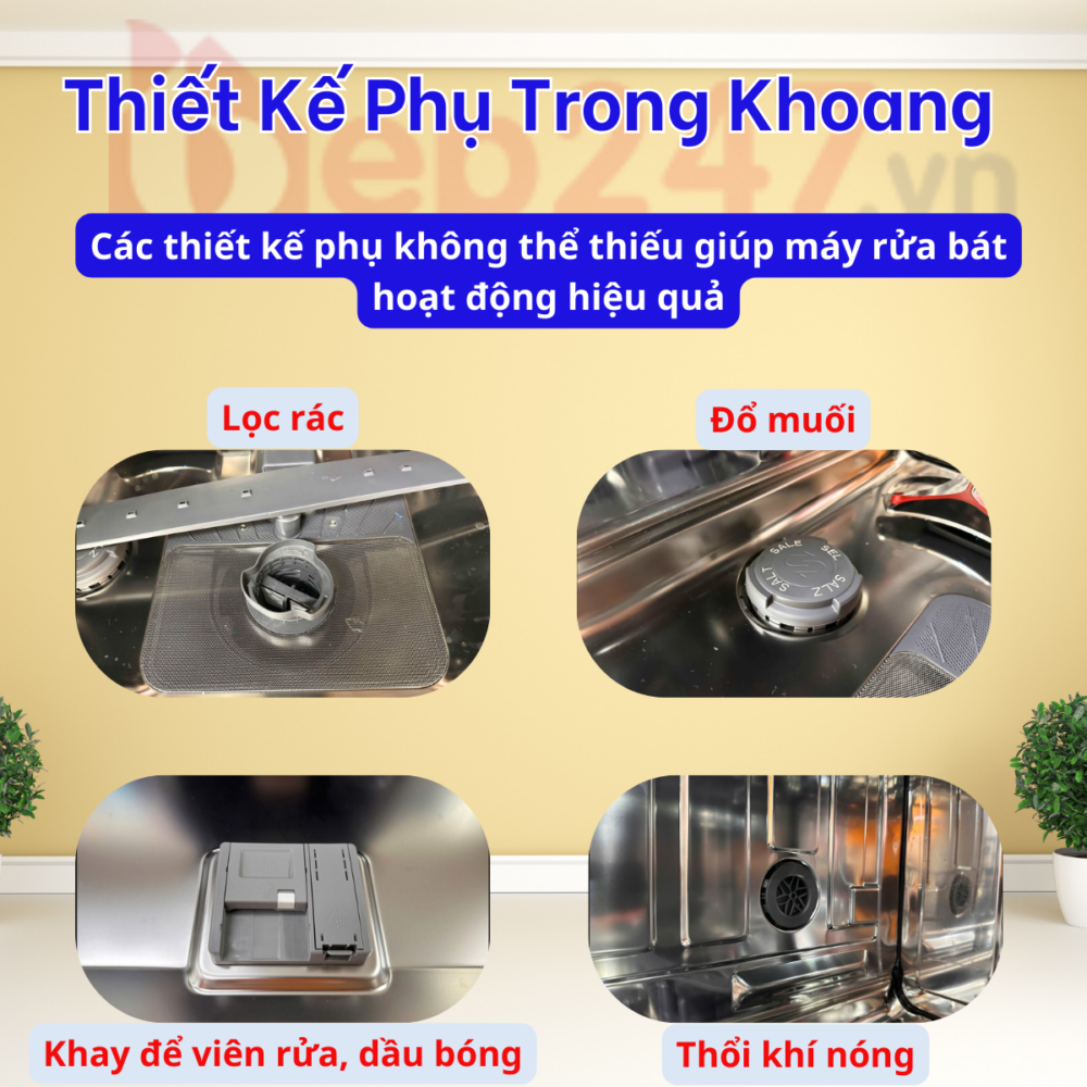 - Điện năng tiêu thụ: ~0.86 kWh/lần rửa