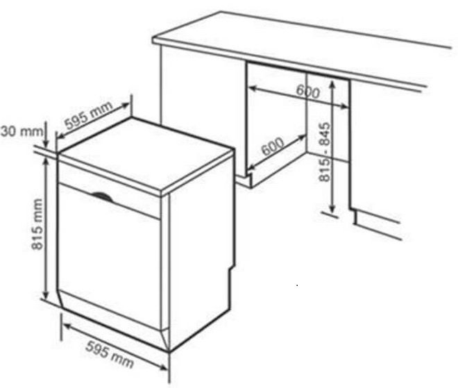 - Thiết kế kiểu dáng: Máy rửa chén có kiểu dáng thanh thoát, góc cạnh theo phong cách châu Âu, tạo sự sang trọng và tinh tế cho không gian bếp.