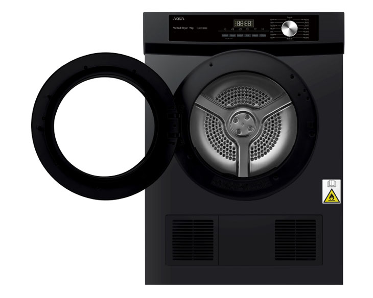 Máy sấy thông hơi Aqua 9 kg AQH-V901K(PS) có màu đen sang trọng, nhỏ gọn, dễ bố trí trong không gian gia đình và tương thích với các máy giặt lồng ngang phổ biến. Bảng điều khiển LED song ngữ Anh–Việt kết hợp nút nhấn và núm vặn giúp thao tác đơn giản, dễ quan sát thông số và chọn chương trình sấy phù hợp.
