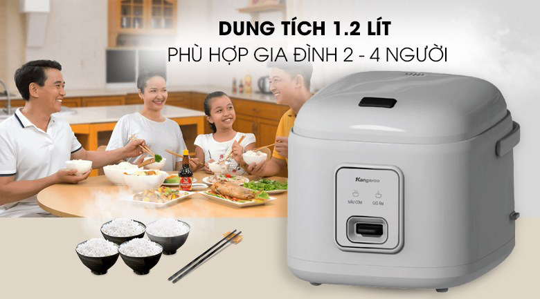 - Nồi Cơm Điện Kangaroo KGRC12M1 là một lựa chọn tuyệt vời cho gia đình nhỏ nhờ vào thiết kế nhỏ gọn và dung tích 1.2L, phù hợp cho 2-4 người. Công nghệ nấu 1D hiện đại giúp cơm chín đều và dẻo, mang lại hương vị thơm ngon mà không mất nhiều thời gian.