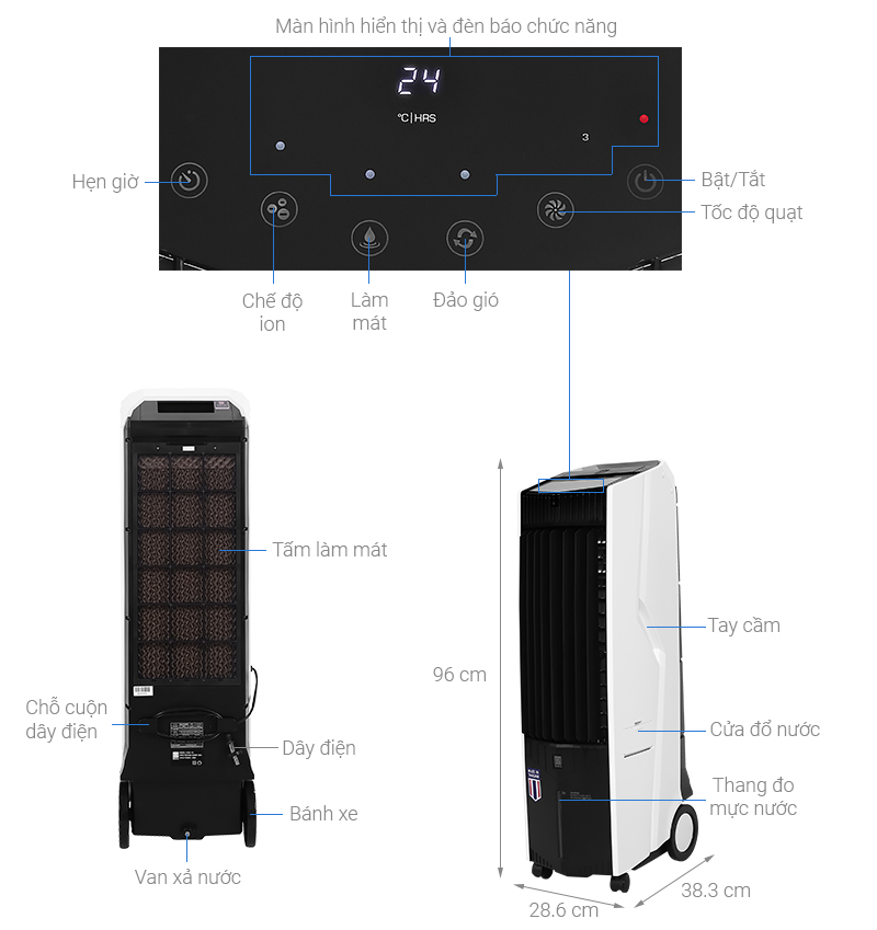 Phạm vi làm mát thích hợp lên đến 15 – 20 m2 với công suất 100W
