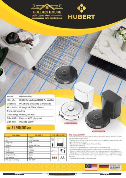 Robot Hút Bụi, Lau Sàn Hubert HB-S68-Plus được phân phối chính hãng tại Siêu Thị Bếp Khánh Trang, giao hàng và lắp đặt miễn phí TP.HCM, bảo hành chính hãng, bảo trì nhanh tận nhà trong 2 giờ.