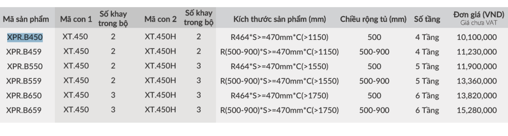 - Số khay chứa: 3x XT.450 + 3x XT.450H