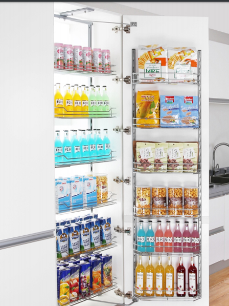 Thay vì xếp đồ đạc một cách không khoa học tạo nên sự bề bộn cho bếp thì tủ kho sẽ đem tới cho bạn sức chứa vô cùng lớn giúp căn bếp luôn sạch sẽ, gọn gàng. Với thiết kế 6 tầng, 12 rổ đựng. bạn có thể tha hồ cất gọn tất cả các vật dùng, đồ ăn.. vào khoang tủ phía sau cánh cửa tủ.