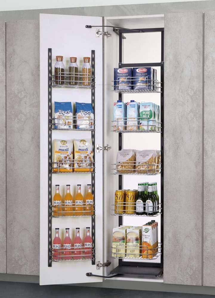 Thay vì xếp đồ đạc một cách không khoa học tạo nên sự bề bộn cho bếp thì tủ kho sẽ đem tới cho bạn sức chứa vô cùng lớn giúp căn bếp luôn sạch sẽ, gọn gàng. Với thiết kế 6 tầng – 12 rổ đựng. bạn có thể tha hồ cất gọn tất cả các vật dùng, đồ ăn.. vào khoang tủ phía sau cánh cửa tủ.