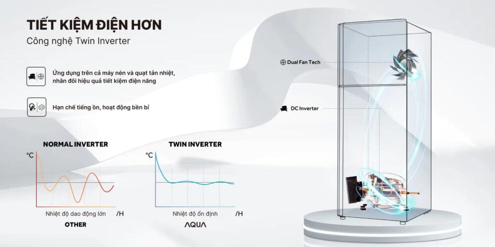 - Công nghệ tiết kiệm điện: Twin Inverter vận hành êm ái, tiết kiệm điện
