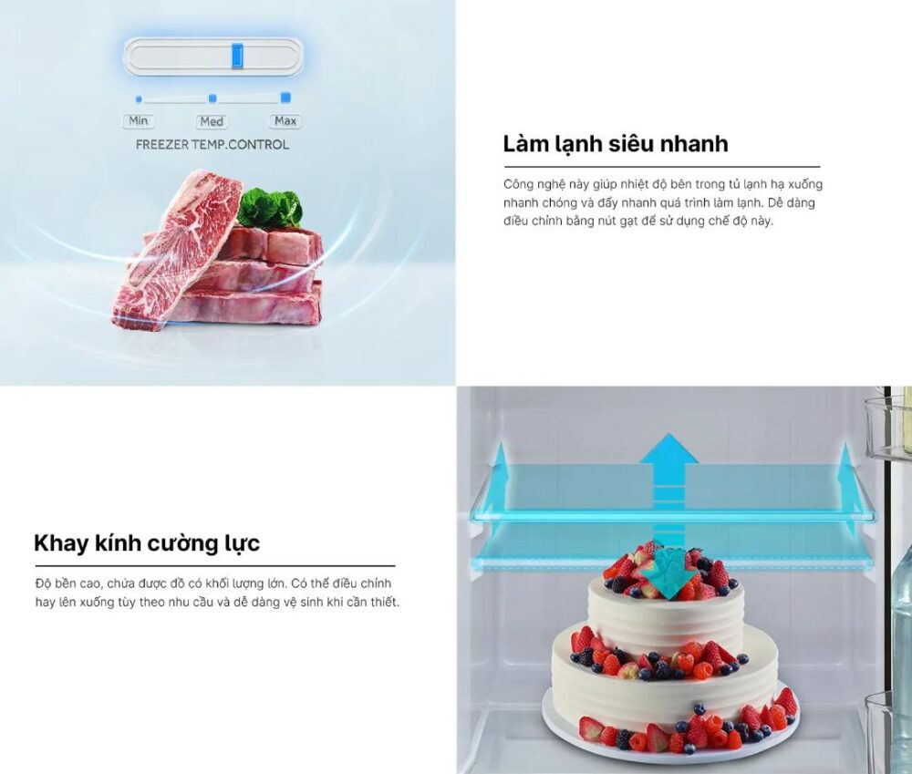 - Khả năng làm lạnh ổn định, bảo quản thực phẩm tốt