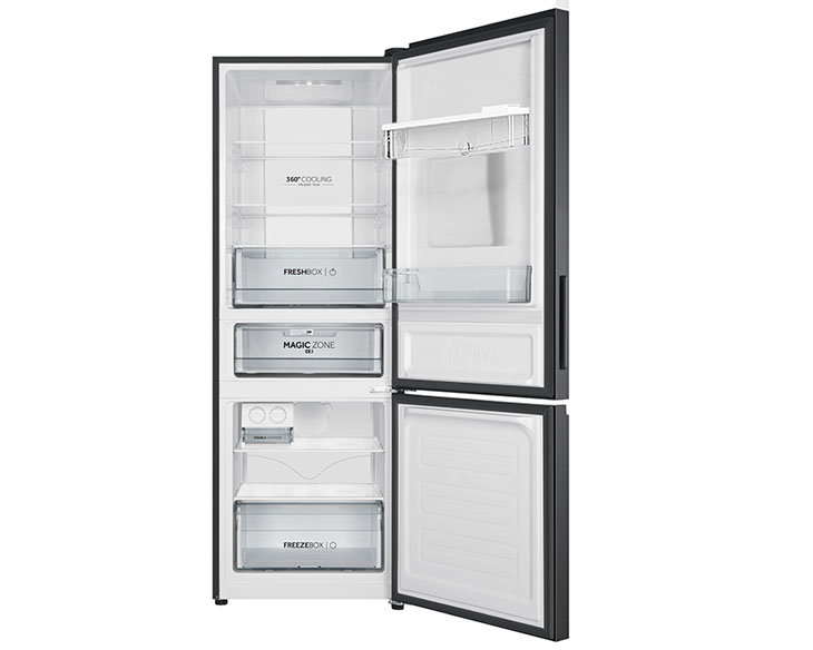 Thiết kế ngăn đá dưới giúp ngăn mát nằm ở tầm mắt, thuận tiện khi sử dụng hằng ngày. Khay kính cường lực chịu tải tốt, linh hoạt điều chỉnh và dễ vệ sinh. Dung tích 292 lít phù hợp cho gia đình nhỏ từ 2–3 thành viên.