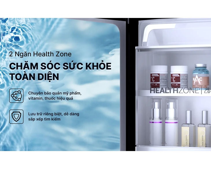 - 2 ngăn Health Zone bảo quản mỹ phẩm, dược phẩm