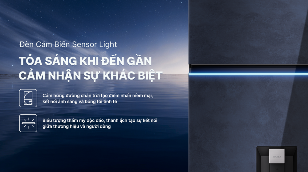 Hệ thống đèn cảm biến tự động phát sáng nhẹ tại tay cầm hoặc viền tủ khi người dùng đến gần. Tính năng này đặc biệt hữu ích vào ban đêm, vừa tiện lợi vừa tạo điểm nhấn công nghệ hiện đại. Đồng thời góp phần nâng cao trải nghiệm sử dụng hàng ngày.
