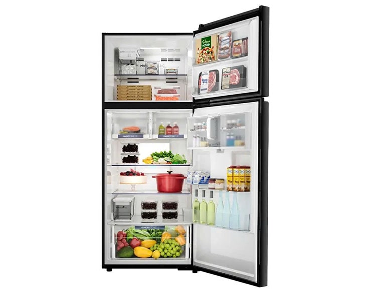 Với dung tích 480 lít, tủ lạnh đáp ứng tốt nhu cầu lưu trữ thực phẩm cho gia đình đông người. Hệ thống ngăn kệ được bố trí khoa học, phù hợp cho nhiều loại thực phẩm từ rau củ, thịt cá đến đồ uống và thực phẩm đông lạnh. Nhờ đó, người dùng dễ dàng sắp xếp và quản lý thực phẩm hằng ngày một cách gọn gàng, tiện lợi.