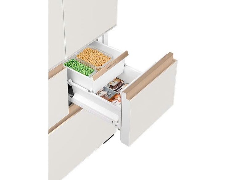 Với chiều sâu chỉ 594 mm, tủ lạnh tương thích hoàn hảo với hệ tủ bếp tiêu chuẩn. Thiết kế này giúp tổng thể bếp trông gọn gàng, tinh tế và không bị lồi ra ngoài. Mang lại trải nghiệm thẩm mỹ cao cho không gian nấu nướng. - Hệ thống lưu trữ khoa học, đa dạng ngăn