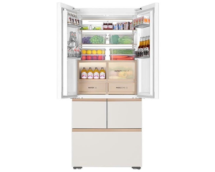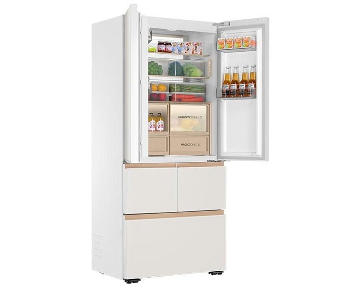 - Với dung tích sử dụng 515 lít và hệ thống ngăn chứa khoa học, tủ đáp ứng tốt nhu cầu lưu trữ thực phẩm cho gia đình từ 4–5 người trở lên. Các ngăn chuyên biệt như Magic Zone, HCS, HCF cùng khay kệ nghiêng 95° tối ưu không gian và dễ dàng sắp xếp nhiều loại thực phẩm từ rau củ đến thực phẩm đông lạnh.