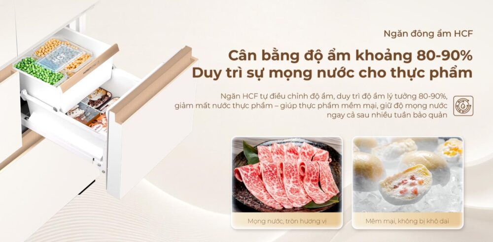 - Ngăn đông HCF cân bằng độ ẩm 80–90%