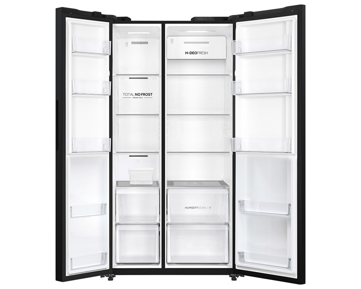 - Về công nghệ, tủ lạnh được trang bị Twin Inverter giúp tiết kiệm điện hiệu quả, vận hành êm ái và duy trì nhiệt độ ổn định. Hệ thống làm lạnh gián tiếp kết hợp đa chiều giúp hơi lạnh phân bổ đồng đều khắp các ngăn, bảo quản thực phẩm tốt hơn. Công nghệ khử mùi diệt khuẩn H-DEO Fresh giúp không gian bên trong luôn sạch sẽ, hạn chế mùi hôi khó chịu.