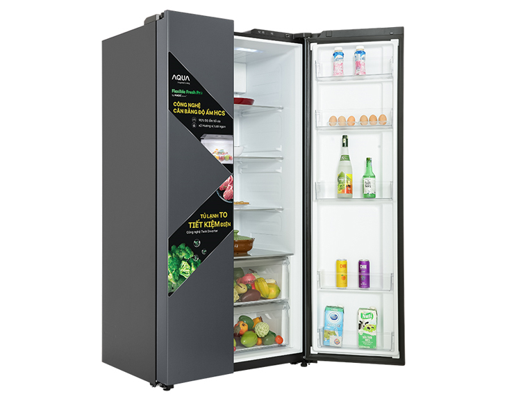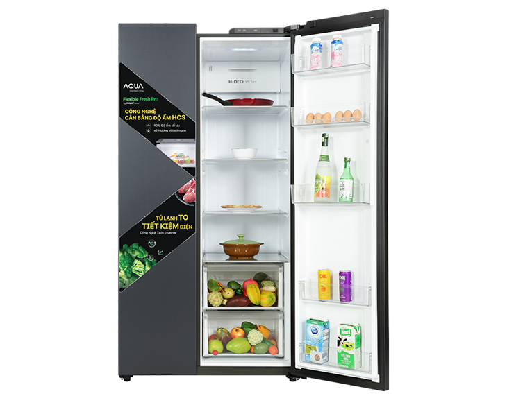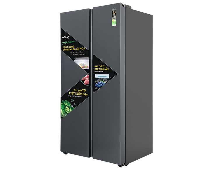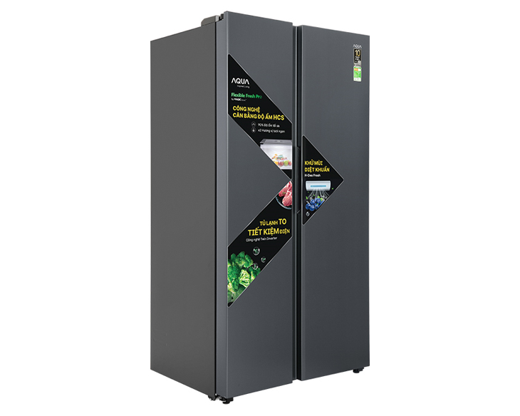 - Tủ lạnh Aqua Inverter 646 lít AQR-S682XA(SLB) gây ấn tượng với thiết kế Side by Side hiện đại, cửa thép không gỉ màu xám khói sang trọng, phù hợp nhiều không gian bếp cao cấp. Dung tích lớn 646 lít đáp ứng tốt nhu cầu lưu trữ thực phẩm cho gia đình trên 5 người, bố trí ngăn lạnh – ngăn đá khoa học, dễ sắp xếp và sử dụng hằng ngày.