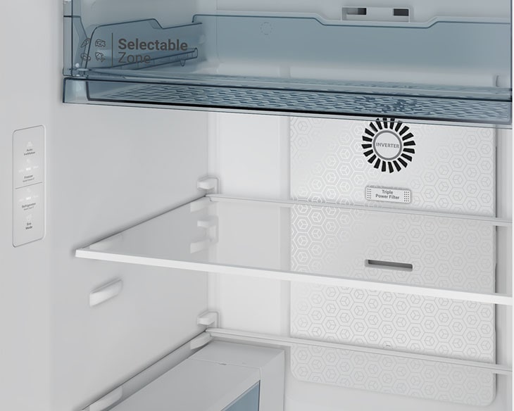 Selectable Zone cho phép điều chỉnh nhiệt độ phù hợp với từng loại thực phẩm khác nhau. Người dùng dễ dàng chuyển đổi giữa bảo quản rau củ, đồ uống hay thực phẩm tươi sống. Tăng tính linh hoạt và tối ưu không gian lưu trữ.