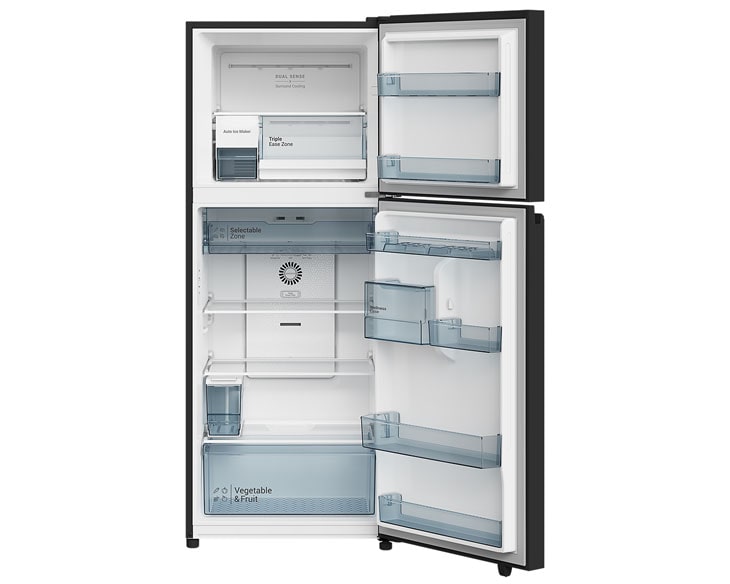 Dung tích sử dụng lên đến 409 lít cho phép lưu trữ lượng lớn thực phẩm cho gia đình 4–5 người. Ngăn lạnh 315 lít rộng rãi, dễ phân loại rau củ, thịt cá và đồ uống. Ngăn đá 94 lít đáp ứng tốt nhu cầu trữ đông và làm đá thường xuyên. - Công nghệ làm lạnh vòng cung Dual Sense giữ thực phẩm tươi lâu
