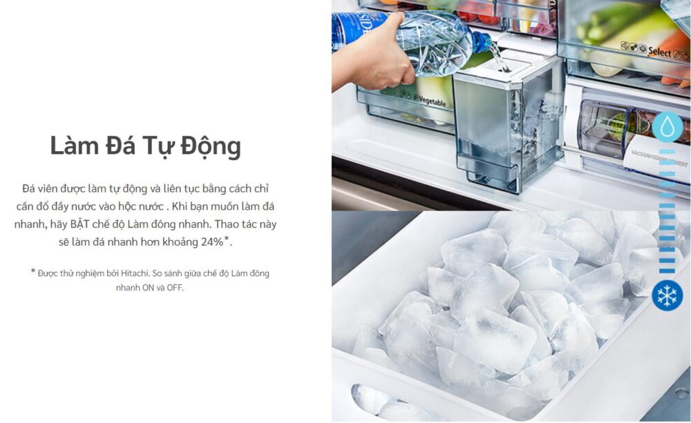 - Tủ được trang bị ngăn chân không duy trì áp suất khoảng 0,8 atm, giảm oxy hóa và giữ trọn độ tươi ngon cho thịt, cá và các sản phẩm từ sữa, đồng thời bộ lọc Triple Power 3 lớp loại bỏ mùi khó chịu và diệt khuẩn hiệu quả, đảm bảo không gian bên trong luôn sạch sẽ. Chức năng làm đá tự động cùng chế độ làm đông nhanh mang lại sự tiện lợi tối đa trong sử dụng.