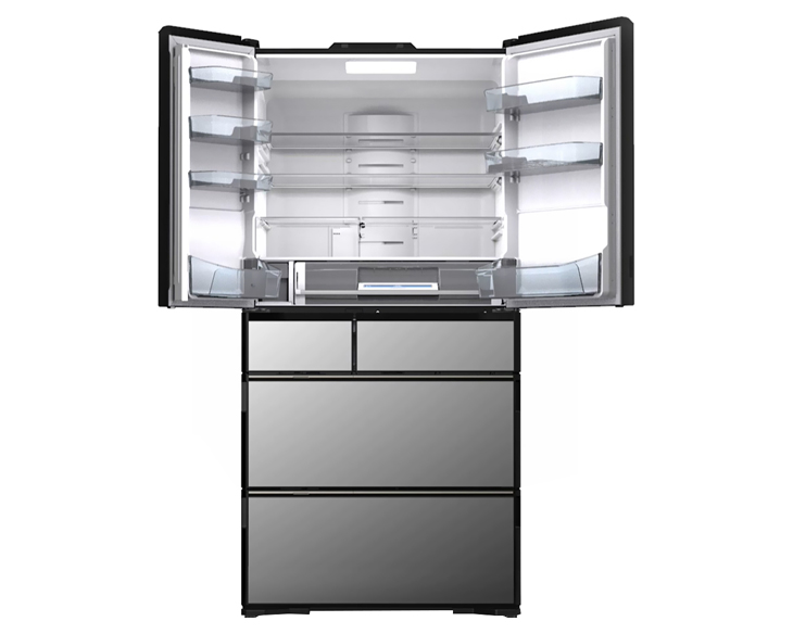 Tủ lạnh sở hữu thiết kế 6 cánh hiện đại với bề mặt gương pha lê sáng bóng, tạo điểm nhấn sang trọng cho không gian bếp. Kiểu dáng Multi Door giúp tối ưu việc sắp xếp và phân loại thực phẩm. Tổng thể thiết kế mang đậm phong cách cao cấp của dòng tủ lạnh Hitachi nội địa Nhật.