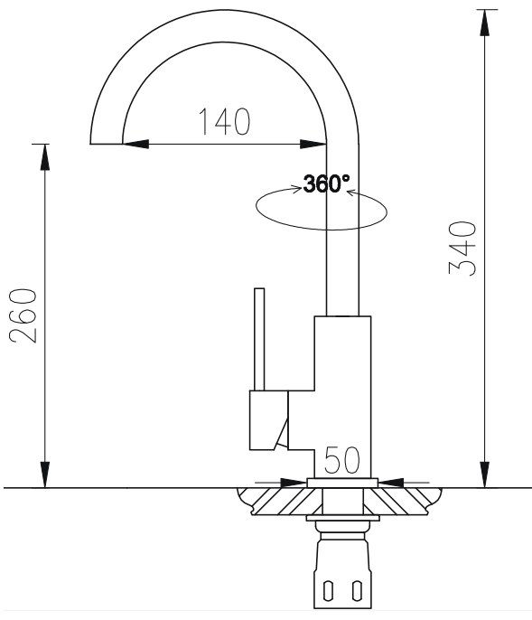 - Chiều cao thân vòi (mm): 340
