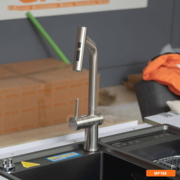 Vòi rửa tay cao cấp nóng lạnh inox 304 GARIS MF16E được thế kế độc quyền trên thế giới. Vòi MF16E gồm dây cấp, đầu vòi và lõi trộn nóng lạnh. Có thể tùy chỉnh 2 chế độ nước là nóng và lạnh, thuận tiện, dễ dàng. Nhờ trang bị công nghệ đặc biệt nên vòi rửa tay nóng lạnh MF16E có khả năng giảm tiếng ồn tới 50% và tăng 30% lưu lượng của dòng nước. Giúp lực nước mạnh hơn rất nhiều lần. Ngoài ra, nhờ được gia công hoàn toàn bằng inox nên độ chống gỉ sét của sản phẩm hoàn hảo, giúp tuổi thọ bền bỉ hơn.